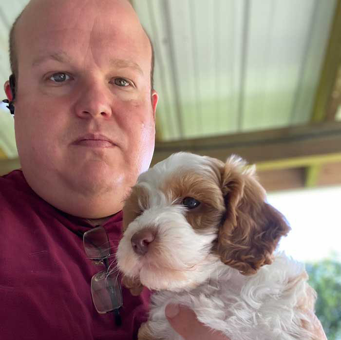 Jack Passmore is the proverbial “Dog Uncle” for our doodles in Victoria, Texas. Jack is available 24/7 for the needs of our mommas and puppies. Though he is available 24/7, that does not mean he gives them attention 24/7. We do not want the puppies to go to their new homes expecting to be around someone all the time, as many of our new families will need to leave their puppies at home while at work.