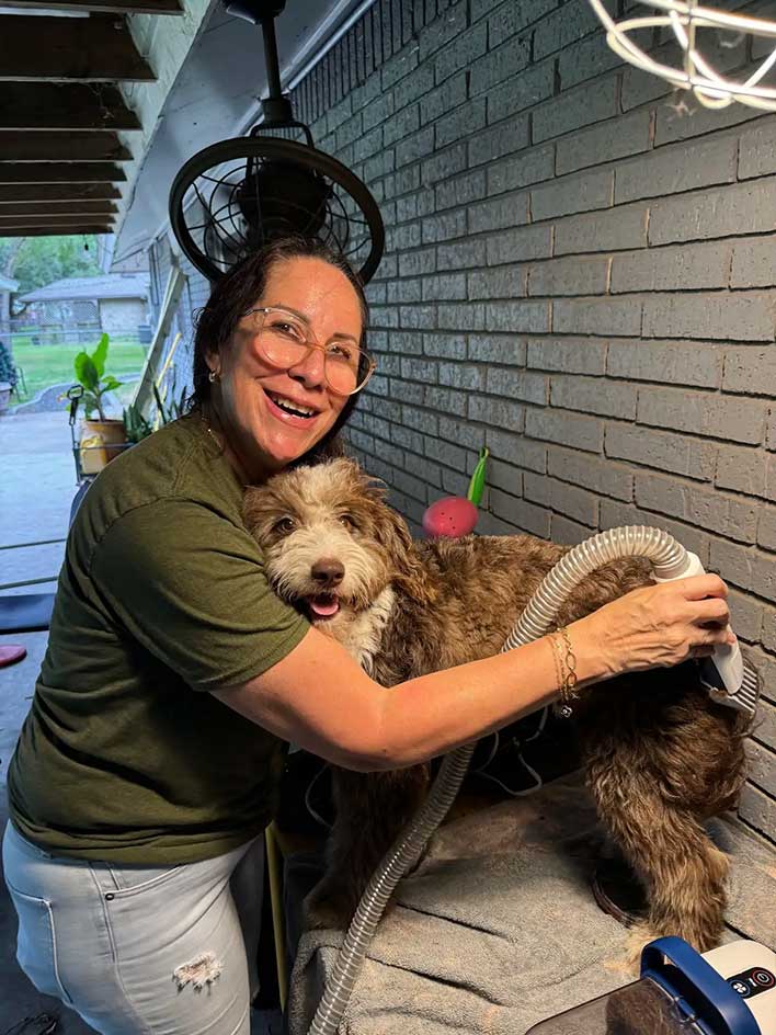 Judy was a perfect choice for a guardian mother in our breeding program. After a very busy life raising three boys, teaching, and hosting dozens of foreign exchange students, Judy’s innate nature of teaching and nurturing has now transitioned to grandparenting and doodle raising! Judy has a miniature multigenerational Australian Labradoodle momma, Eowyn, and a toy golden doodle, Paddington at her home in Houston, Texas.
